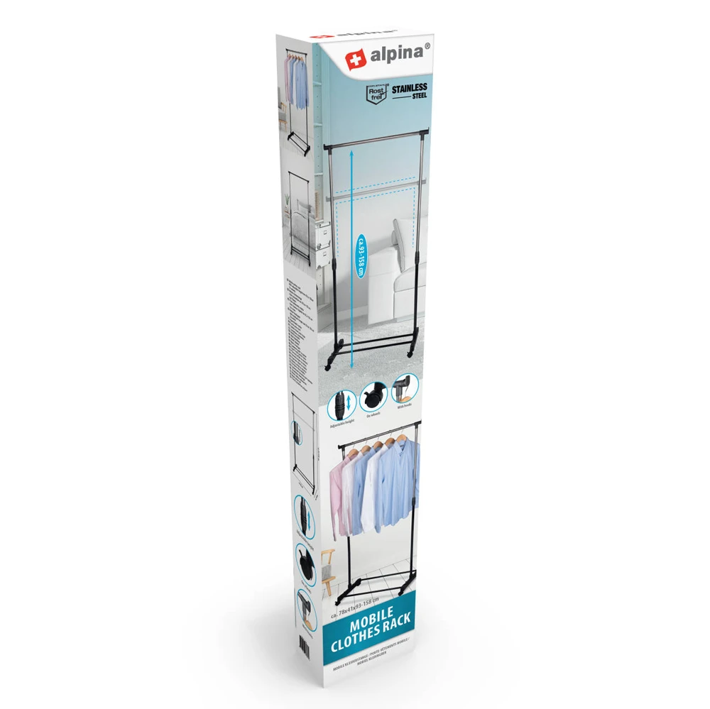 Kledingrek Op Wieltjes – In Hoogte Verstelbaar – Alpina