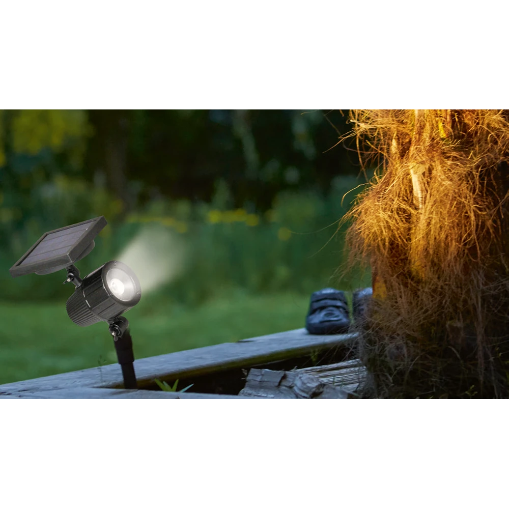 Ben je op zoek naar spotverlichting? De Luxform Salamanca van hoogwaardig kunststof is bijzonder geschikt voor het verlichten van foto’s, objecten of bijzondere struiken. De spot heeft een lichtopbrengst van 20 lumen, ook is de stralingshoek instelbaar. Je kunt kiezen voor een gerichte lichtstraal. Of wil je iets breeds benadrukken, dan kan dat natuurlijk ook. De kop en het zonnepaneel zijn beide verstelbaar, zodat het licht kan worden aangepast en het zonnepaneel de maximale zonnestralen kan opvangen. Om de installatie eenvoudig te maken heeft de lamp een bijgeleverde grondpen die eenvoudig in de grond te steken is. De lamp behoort tot het All Year Round assortiment.
