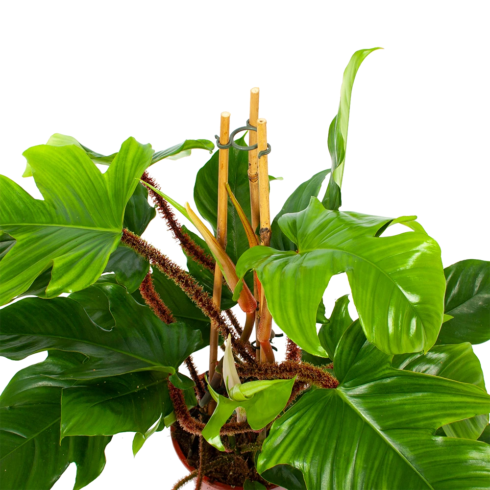 Deze grote groene plant valt op door zijn bladeren met inkepingen en rode harige stengels. De Philodendron Squamiferum Piramide is een makkelijke kamerplant die weinig verzorging verlangt. Handig voor als je (nog) geen groene vingers hebt of maar weinig tijd. Ook fijn is dat alle Philodendrons sterk luchtzuiverend werken. Plaats de plant op een schaduwrijke plek. Geef hem regelmatig water en houd de grond tussen het water geven door licht vochtig.