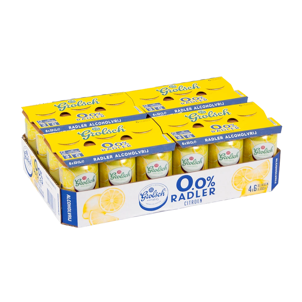 A-merken frisdrank van FrisdrankVoordeel voor de scherpste prijzen! Een hele tray Grolsch 0.0% Radler Citroen Γ‘ 24 stuks. Bestel nu gemakkelijk jouw frisdrank en kom het afhalen bij Tuincentrum de Biezen in Beek en Donk.