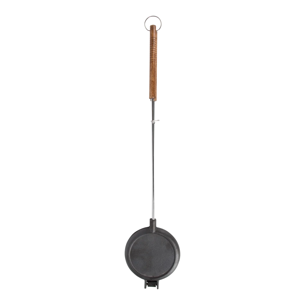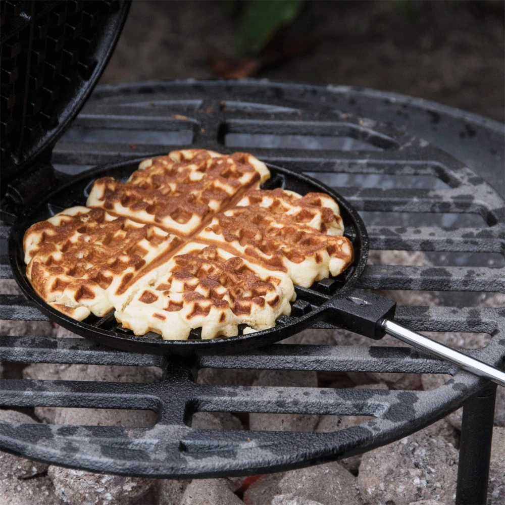 Zo wordt buiten koken wel heel erg leuk. Maak wafels boven het open vuur of op de barbecue met dit wafelijzer.