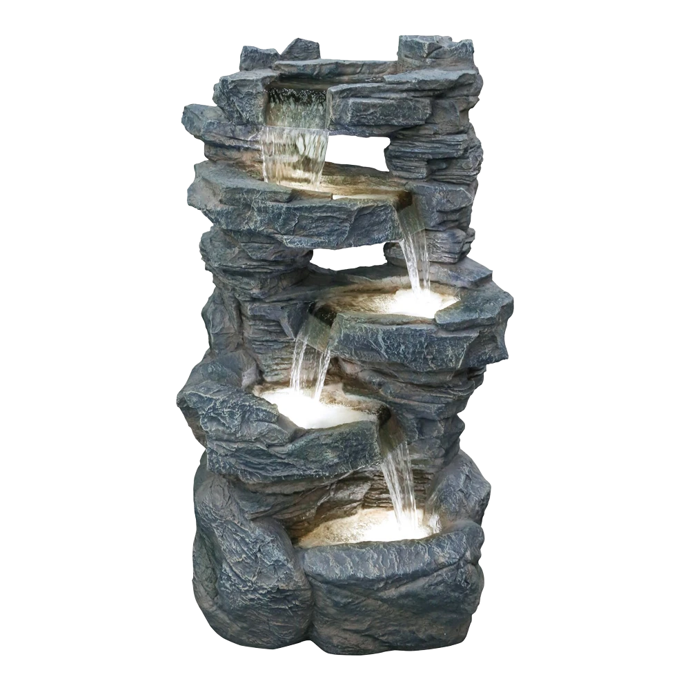 Waterornament Eifel 103 103cm CreΓ«er een sfeervolle plek in je tuin met een waterornament van My Lifestyle Collection. Het waterornament Eifel is met zijn LED verlichting en strakke design een echte eye-catcher in je tuin of op het dakterras. Hij is gemaakt van polystone, hard kunststof en is grijs van kleur. Het grote voordeel van polystone is dat het precies op natuursteen lijkt, maar licht van gewicht en weerbestendig is. Daarnaast zorgen de drie LED lampjes voor een zeer sfeervol geheel in de avonduren. Gebruik Waterornament Eifel is een compleet waterornament, inclusief pomp, LED verlichting en toebehoren. Vul het reservoir met water, steek de stekkers in het stopcontact en het waterornament is klaar voor gebruik! Kalkafzetting en vergrijzing van de laklaag behoren tot de normale gebruikssporen. Via de achterzijde van het ornament worden de waterdichte kabels van de LED verlichting gekoppeld en de pomp aangesloten. Ook is het reservoir via de achterkant te vullen met water.